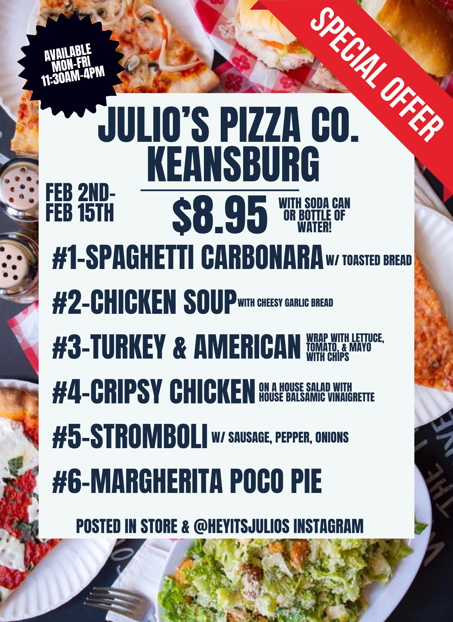 Voila! You did it! you made a Julio's Pizza at home! How does it taste? Does it look like a masterpiece? Don't forget to tag us using the hashtag #JuliosAtHome We want to see your pie-no matter how it turned out!